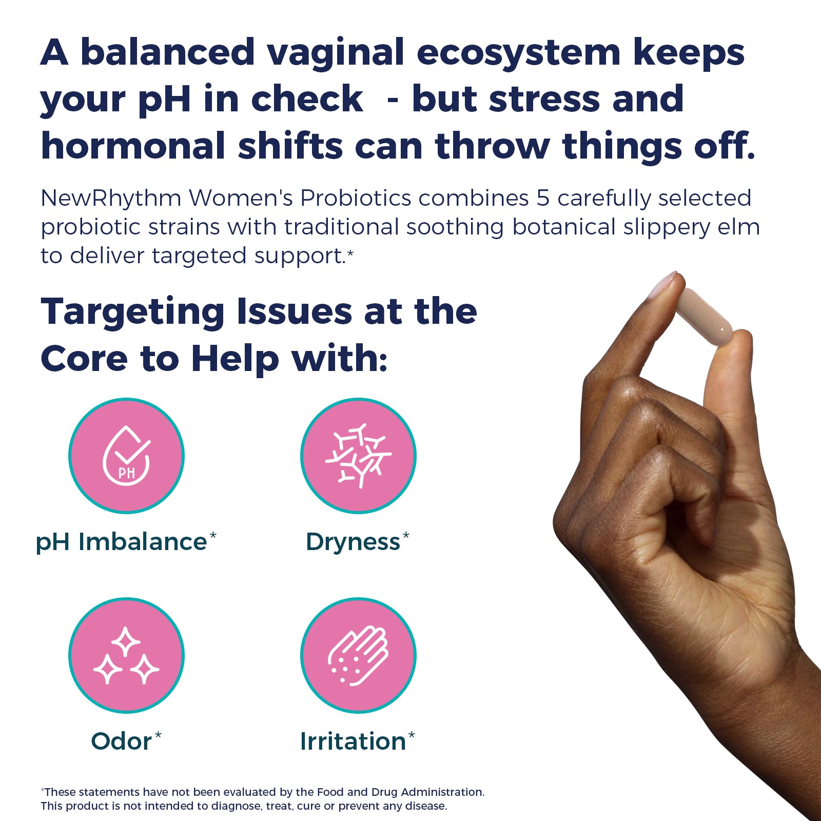 Our Women's Probiotics combines 5 carefully selected probiotic strains with traditional soothing botanical slippery elm to deliver targeted support .*
